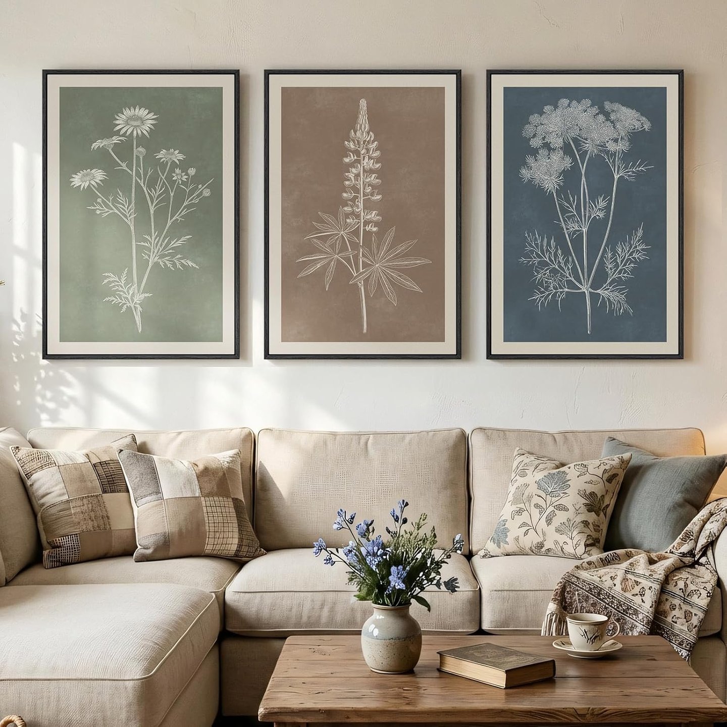 Framed Boho Botanical Wall Art for Living Room