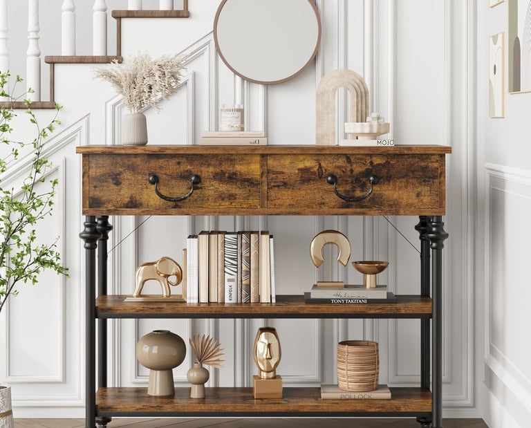 【Drawers & Open Shelves】With two spacious drawers for essentials and two open shelves for decorative items, this versatile entry table is a complete storage hub for any room.