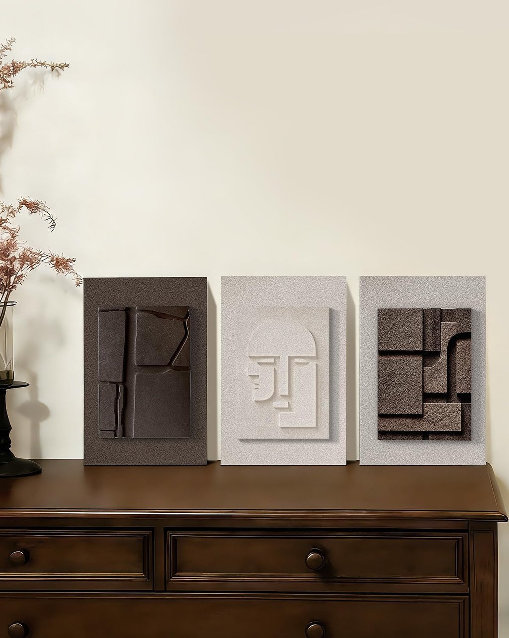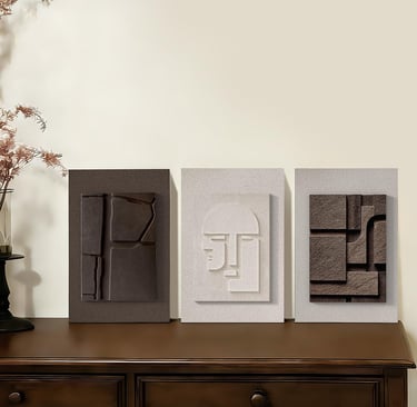 A modern minimalist set of four handcrafted ceramic vases in neutral earth tones, featuring matte finishes and abstract shapes. With varied sizes for visual interest, they’re perfect for fresh or dried flowers or as standalone décor, and include a waterproof interior for practical everyday use.
