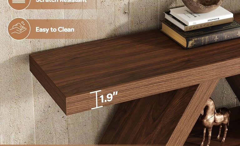This farmhouse console fits perfectly in my entryway—sturdy, spacious, and the walnut finish adds warmth to my home.