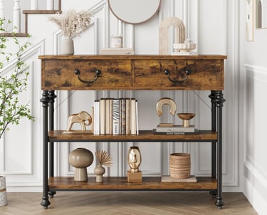 【Drawers & Open Shelves】With two spacious drawers for essentials and two open shelves for decorative items, this versatile entry table is a complete storage hub for any room.