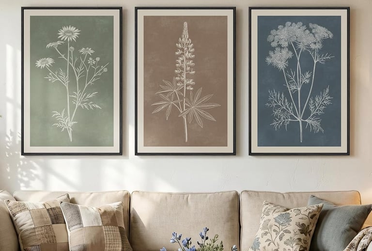 [Elegant Floral Artwork]: Classic sketches and engraved style plants add charm to any setting.