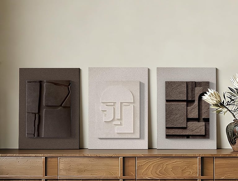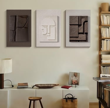 A modern minimalist set of four handcrafted ceramic vases in neutral earth tones, featuring matte finishes and abstract shapes. With varied sizes for visual interest, they’re perfect for fresh or dried flowers or as standalone décor, and include a waterproof interior for practical everyday use.