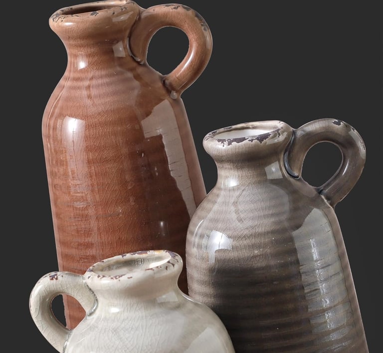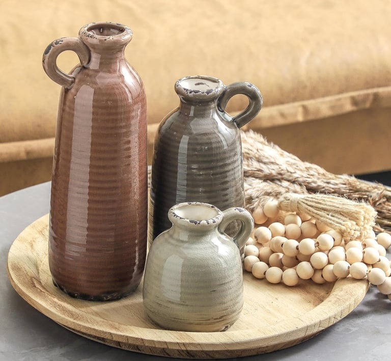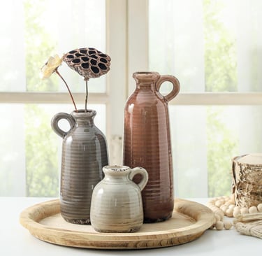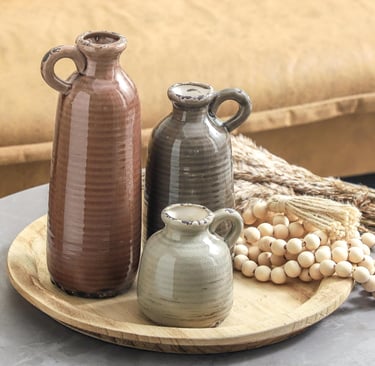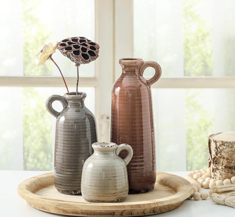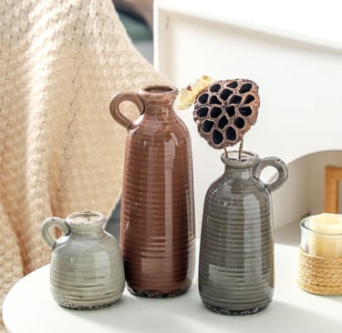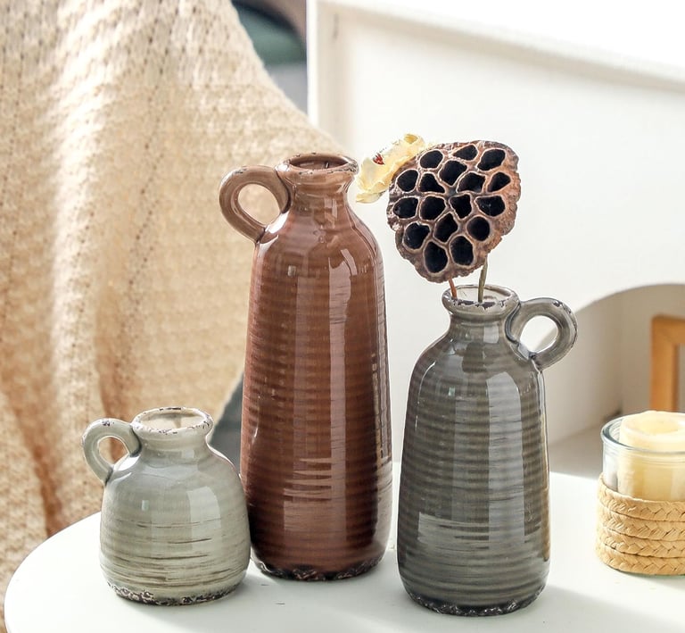 Each vase is crafted from high-quality ceramic with a warm, rustic finish.