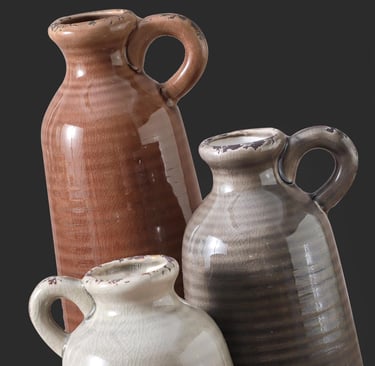 【For Multiple Home Décor Styles】Designed in a variety of shapes and sizes, this rustic vases set is a perfect home décor even without flowers. Whether your style is bohemian, modern farmhouse, rustic, or homey, they all fit in perfectly show off your lifestyle and decorative sense of style. (Length X Diameter=10.43X3.15", 7.79X3.15",4.33X3.34").