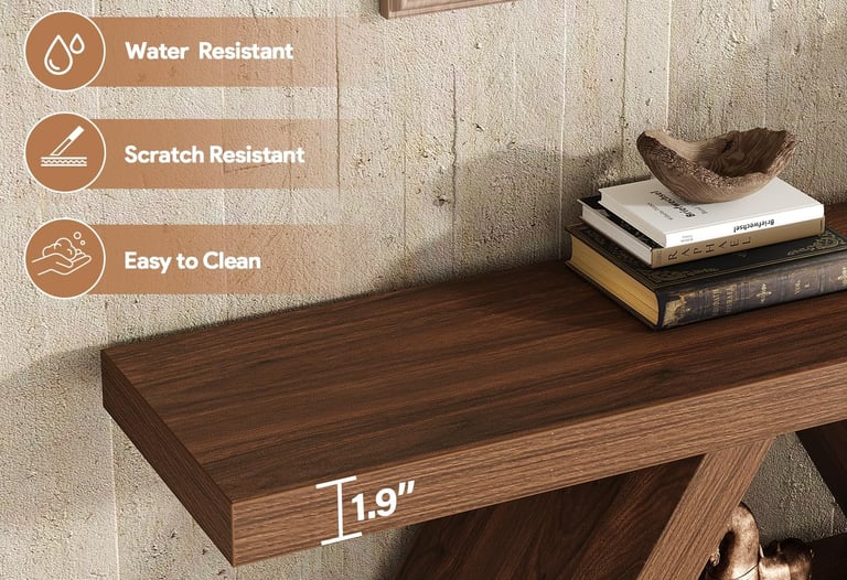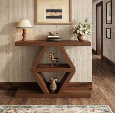 This farmhouse console fits perfectly in my entryway—sturdy, spacious, and the walnut finish adds warmth to my home.
