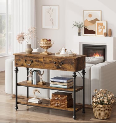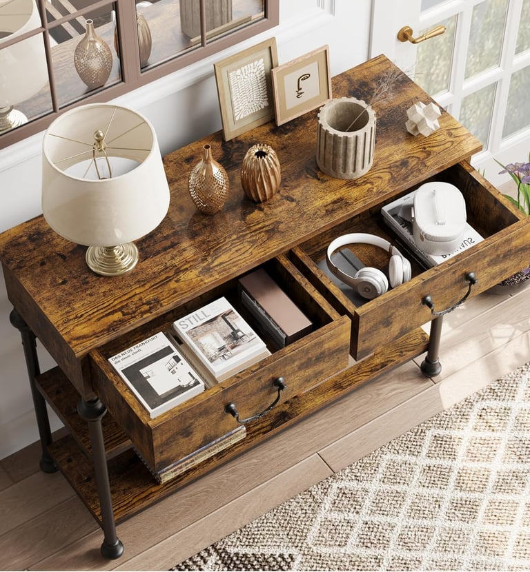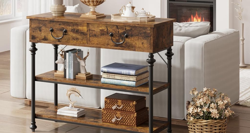 【Perfect Space Saving Solution for Narrow Areas】Maximize your usable space. This slim profile console table measures just under 40 inches long and a mere 11.8 inches deep, making it the ideal small entryway table for tight foyers, a sleek behind couch table that doesn’t overcrowd your living room, or a functional hallway table in confined corridors. It effortlessly fits where wider furniture cannot, turning underutilized nooks into practical and attractive spots for storage and display.