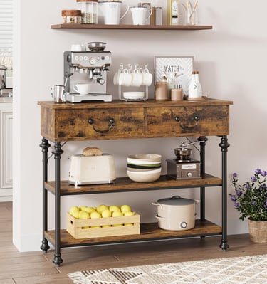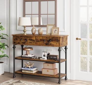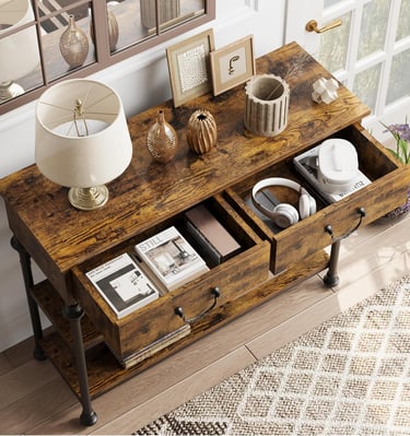Our console tables feature warm wood tones and sturdy construction.