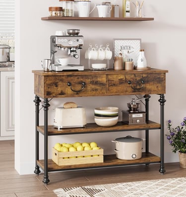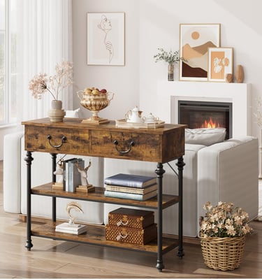 Our console tables feature warm wood tones and sturdy construction.
